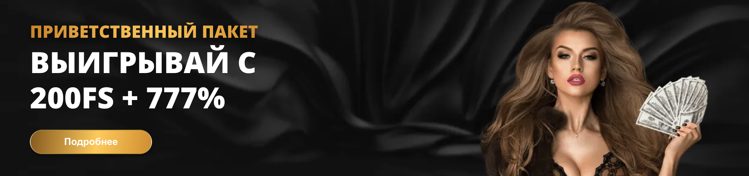 - Огромный приветственный пакет — до 70 000 рублей и 200 FS на четыре стартовых пополнения.